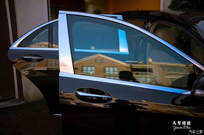 上图左边车门是贴好的,C柱还没有贴,贴过的深了不少,也更黑更亮了,