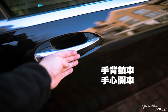 S400H标配四门舒适无钥匙进入,感应非常快,你摸到的同时就已经开锁了,但锁车很多人竟然不知道,直接用手背触一下就可以了,有人还专门去摸那个小方块的位置,不需要的。