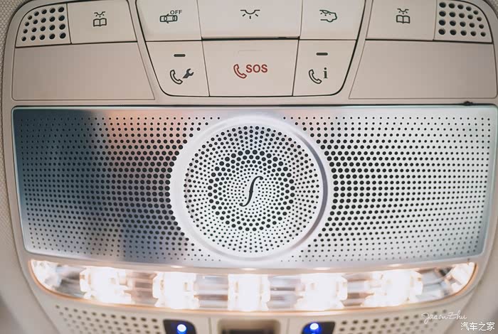 这是新款迈巴赫S680上的顶棚柏林 眼镜盒位的,有2个中音单元,原本的S600h ,是个小圆形的,只有一个中间单元。新款多了个喇叭。