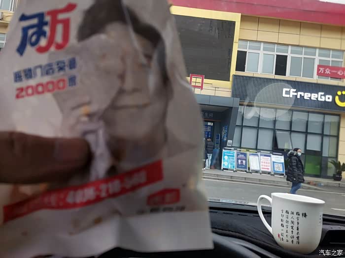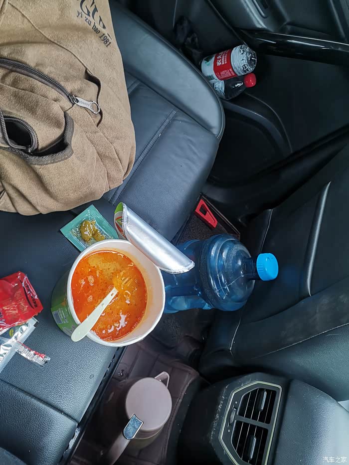 为防疫原则,减少接触与聚集,我在车上,用点烟器电源煮的热水泡方便面。