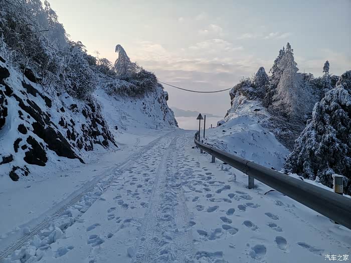 寻雪之旅,年前曾去过一个海拔800米的邻近景区,只有雨;因为对重庆之雪只有理论上的,仙女山金佛山南天湖都是人人人,南天湖传说堵四小时进不去出来。所以第一站选白马山千尺情缘景区,这个景区停车场正好是无冰无雪之地,把有冰有雪之地圈起来,以收费。很多小车,没有防滑链也可以来,老弱病残也可以来。这地方不适合我。