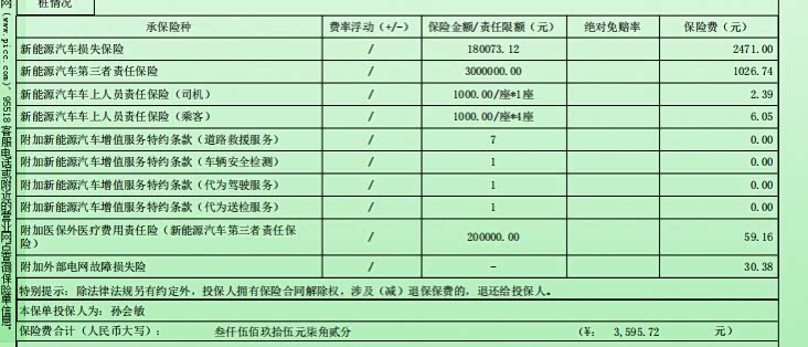 保险费:4250元(交强险855,商业险3595,优惠200)