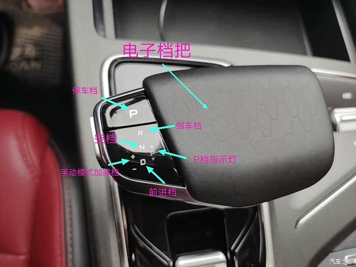 这就是75plus的档把,是有着档次感的电子档把,是爱信的8AT手自一体变速箱,通过图解后大家应该很清楚了吧