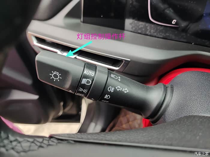 方向盘左前侧的支杆就是灯组控制操作杆