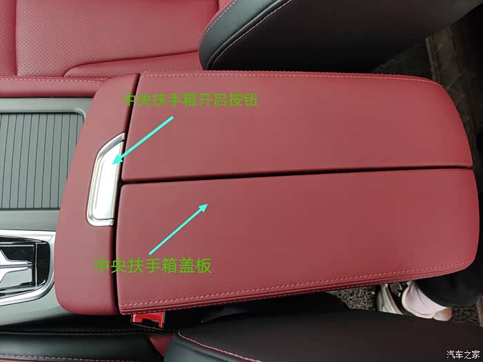 这图是中央扶手箱盖板和开启的按钮