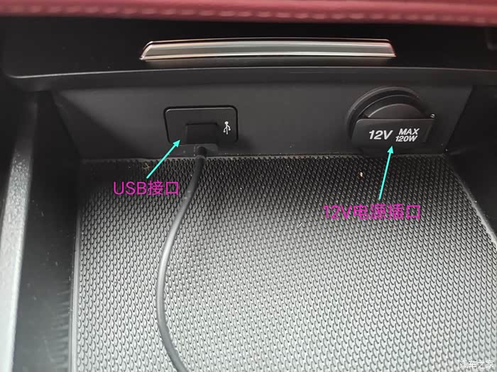 这是后排中央扶手箱背面的USB接口设计
