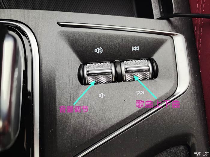 这两个滚动按键位于档把右侧,是控制多媒体声音和切换歌曲的功能
