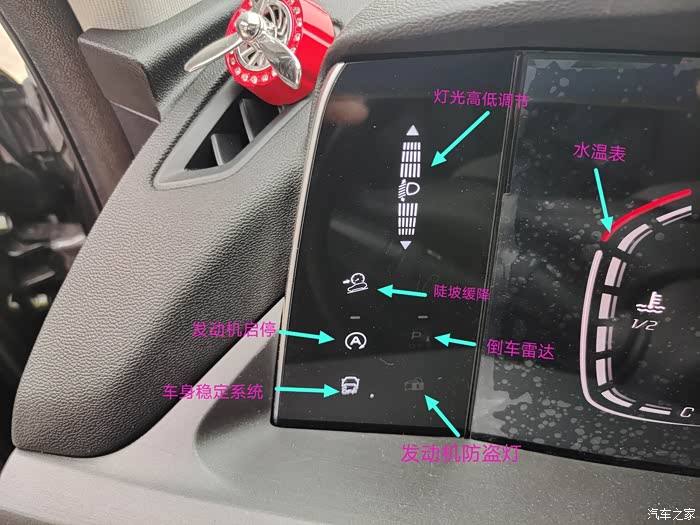 75plus配备了电子手刹、自动驻车和360度的全景影像功能,图上文字解读得很详细,可以看出按键图标代表什么