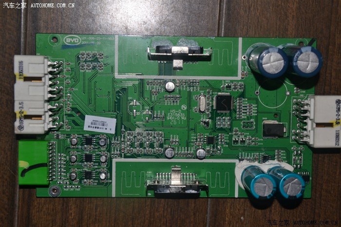 说到这要说一下,车机输出是5。1声道,功放电路也是完整的5。1声道,两个功放一共8声道,图下面那功放块的4个通道都用完,推动四个车门的喇叭,图上面的只采用了两个通道,分别是中置和重低音。重要一点,虽然车机和功放都对那0。1声道做了设计,包括重低音输出线束都安装好了,可BYD没给你们重低音喇叭!!!!!!喜欢的高音乐的哥们自行加装吧。我就计划加装。