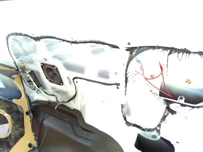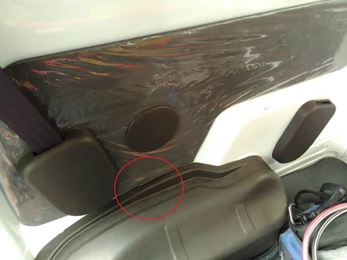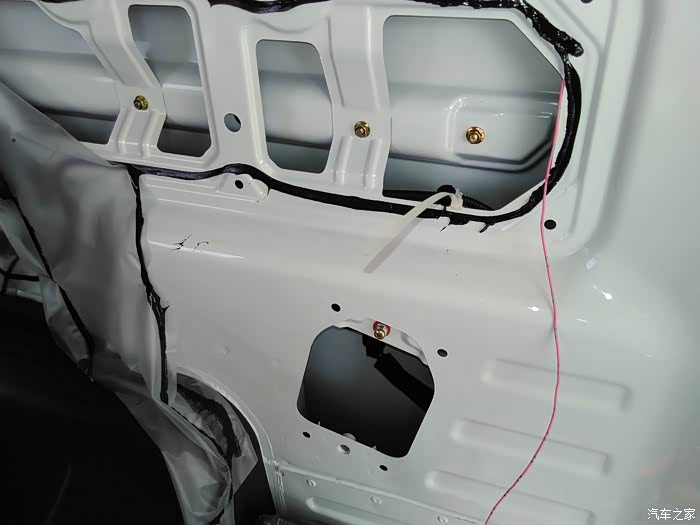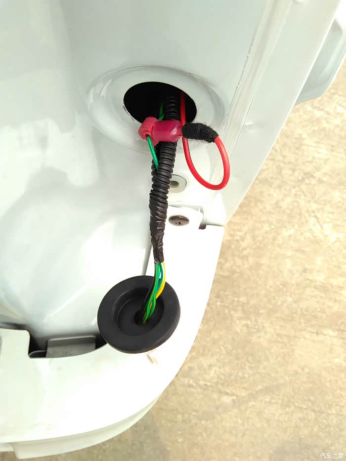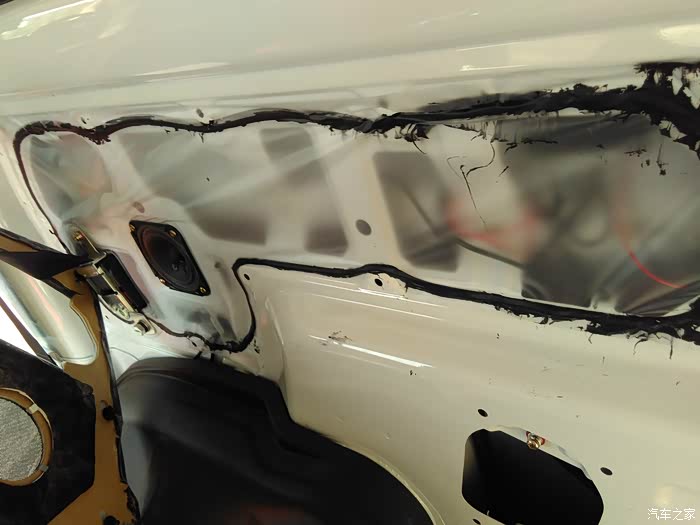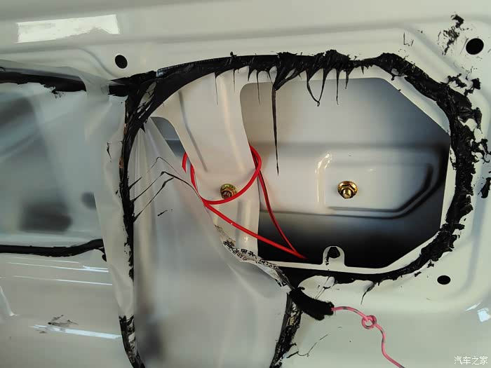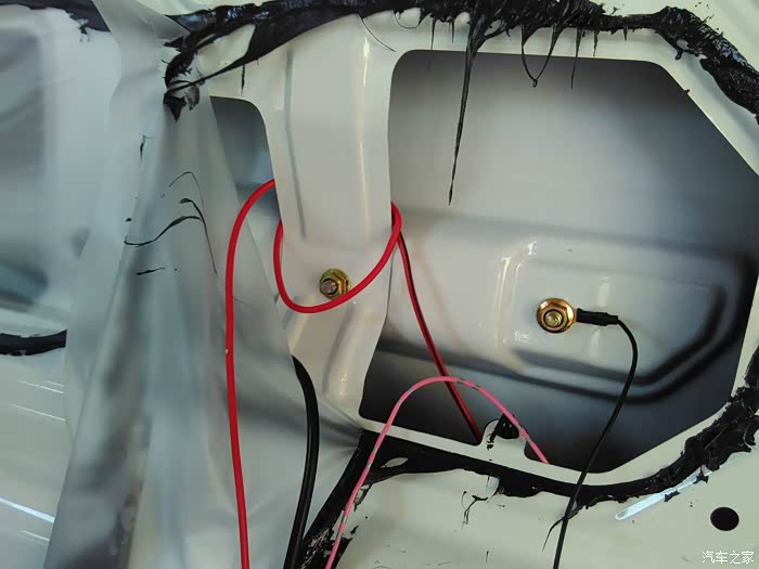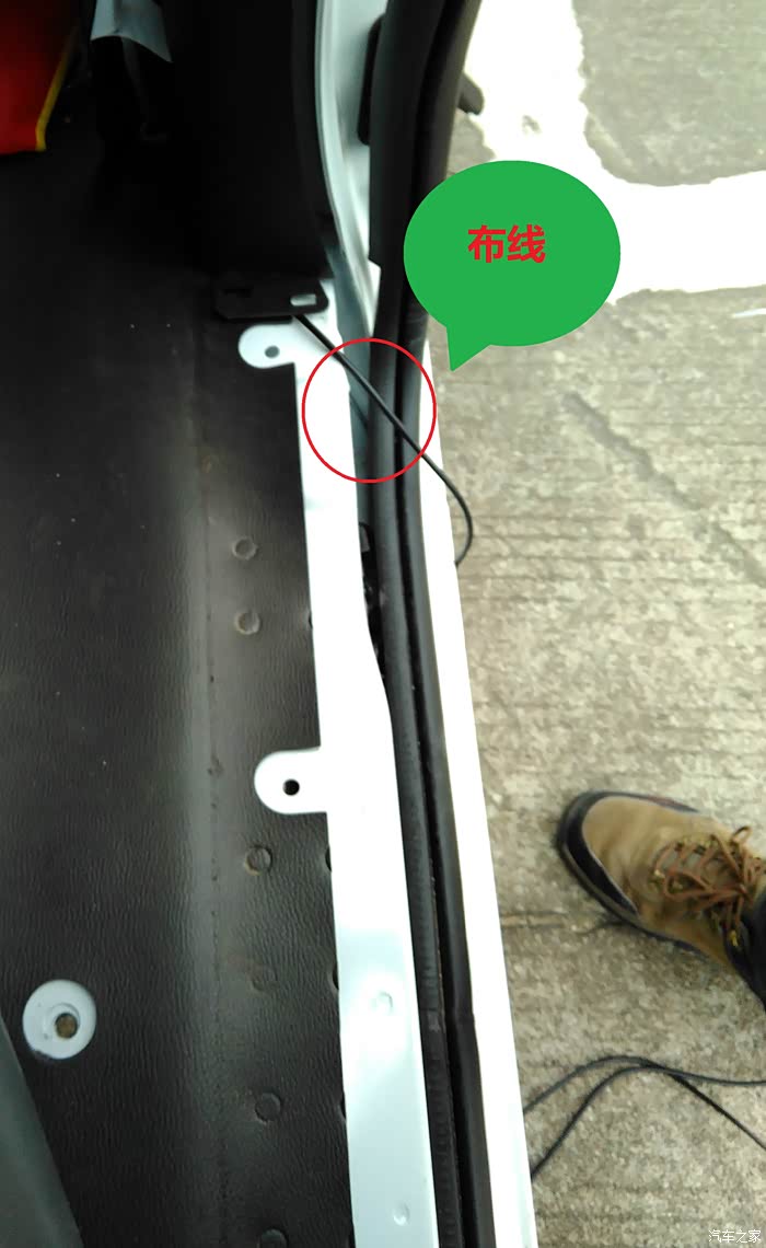 线通过中门最后到轮毂,红圈位置就是衔接右后方喇叭位置的,所以布线是完全没明线外露的哦