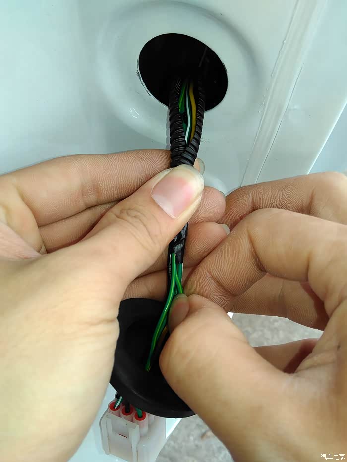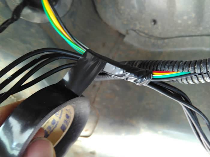 扒开线束,吧探头线一起用电工胶布包在一起