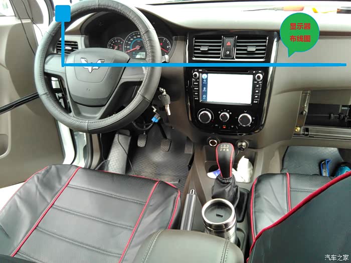 显示器放主驾左边,通过中控走线到右边(懒人可以直接在前档玻璃下边缝隙走线