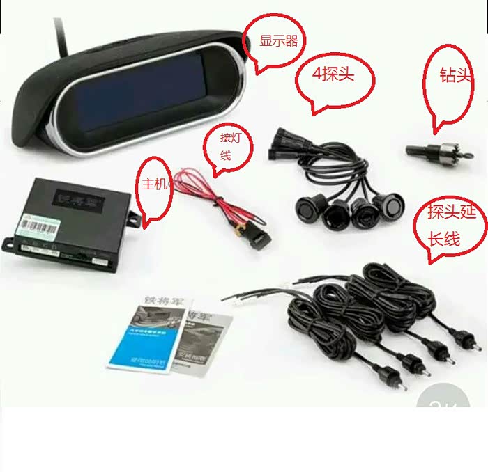 看看雷达套件总览(接倒车灯的取电线自带保险丝盒搭铁线,这个比较省心)