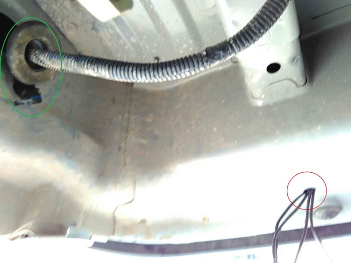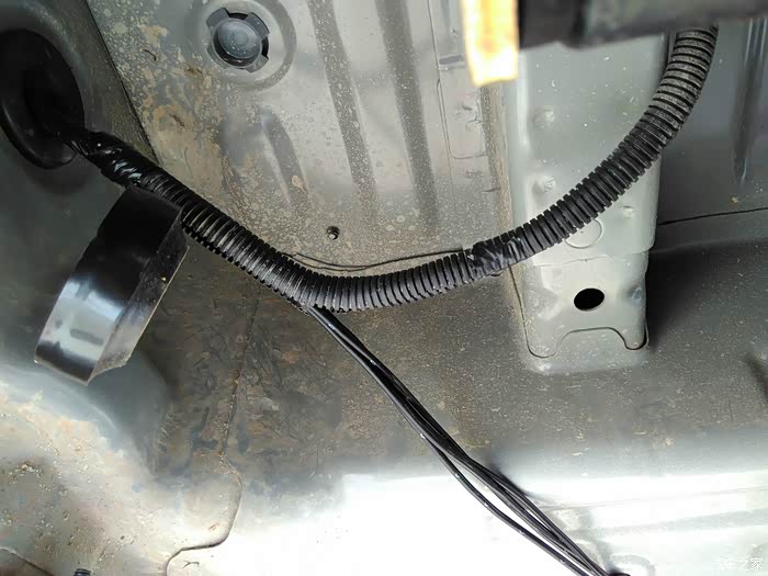 倒车灯在右后,而右后车底,也有线束,探头线可以从这里完美进入车内了