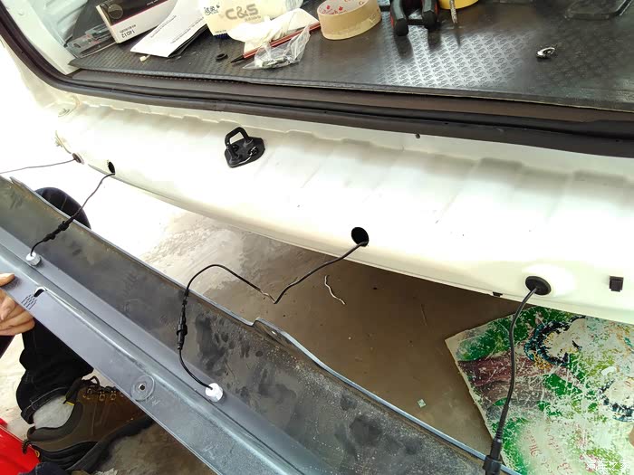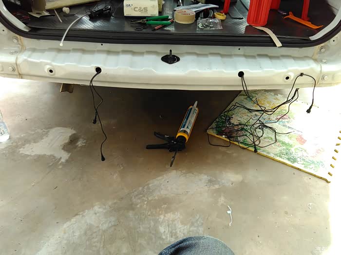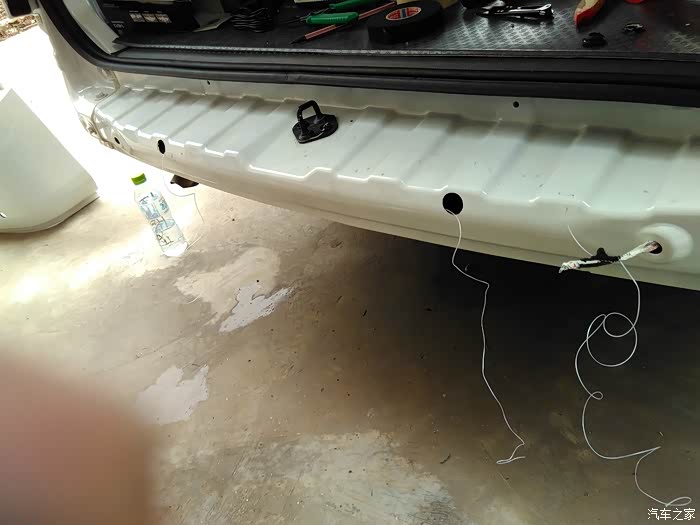 ——————————————————————————————————————————————————————————————————————————————————————————————————————————————————————————————这里要来一条分割线,下面工序才是主戏,因为后护杠是直接包裹着后钢梁的,所以中间的间隙无法正常安装雷达探头,论坛看到有人说外面汽修店也说无法安装。后来看到有个别车友已装就开始查找询问,发现最初想避免的打孔是唯一的方法。好吧,为了装上雷达,钻吧!