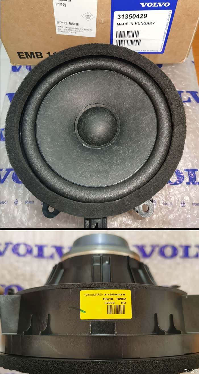 原车拆下的低音:浑浊无力,有点拖后腿,必须换掉(4门的低音喇叭也是无损安装的。)