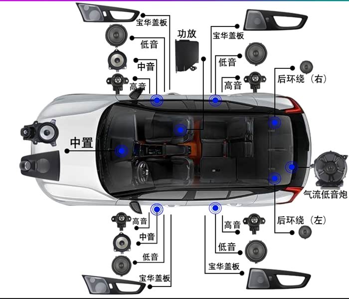 开始前,首先了解一下原厂宝华喇叭的分布图(图片来自网络)