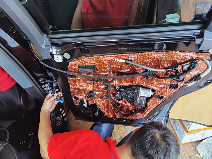 左右后门单独做分频(都是预留孔位的 只要把音频线穿过波纹管,再与B柱的线头对插即可)
