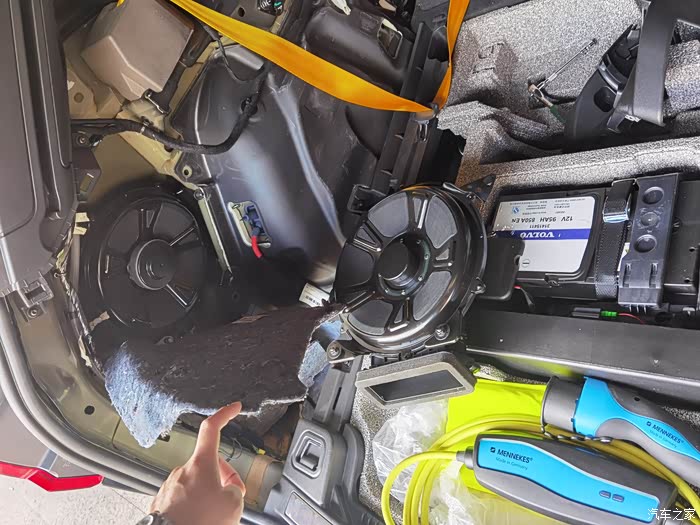 因为我们用的是1400瓦的功放,完整的12路,XC60原本是十路1100瓦,1400瓦的表现会更好,后门布线就是把后门被动分频变为主动,把高音单独分出来,音乐的质感会更好,而且低频的下潜也会更好,它不是单纯的全频信号了。(这就是XC90宝华比XC60宝华优秀之处,所以把XC90的做法套用到XC60上,音质会比原车更好。)