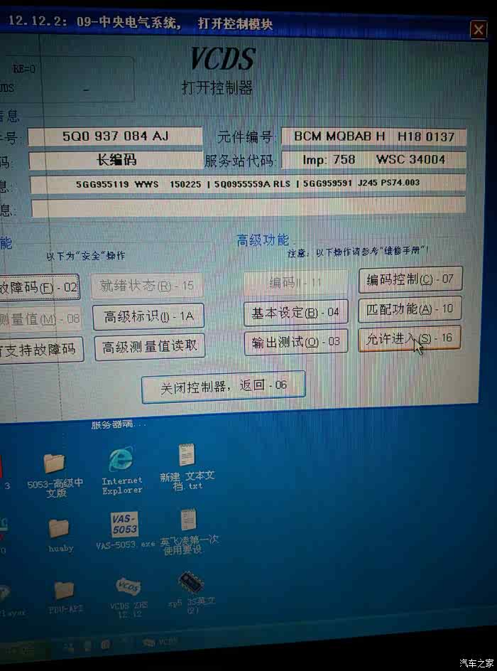 选择模块进入09中央电器系统,点击16允许进入