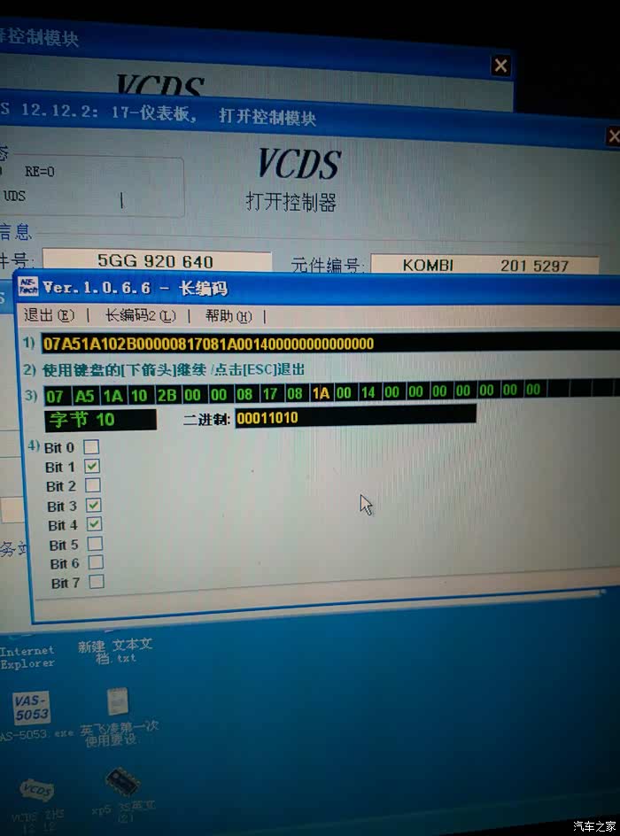 接着就可以修改了,运动指针只需修改左起第二个框的数值,由于照片丢失,只能用这张替代,点击第二格后数字会变成高亮,下面会有一排选项, 在Bit0之后的方框内打勾,然后点退出。反回到长编码界面点击执行!