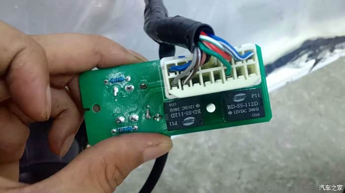 将车窗开关取下,拆开,发现里面有两只小继电器。凭笔者敏锐的直觉,就感觉是这继电器出问题了。用万用表一测,果然是升窗继电器的动触点接触不良。笔者没有同规格的继电器。回家翻箱倒柜找出一堆继电器,最后在一块工业控制电路板上拆下一只较大的继电器,用软线和电路板连接。焊接好后,笔者用热熔胶将电线的两端分别和电路板、继电器封固,以免长期震动使导线脱落。