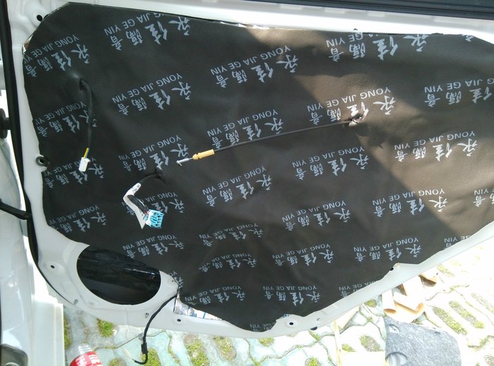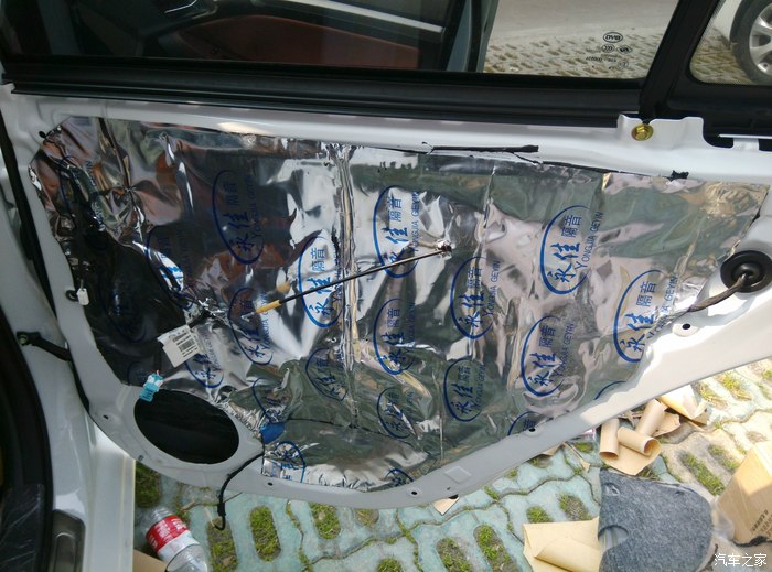 1. 备料:淘宝隔音材料,止震板 8张,隔音棉大概5米,吸音棉四张,实际我买的多了,本来想把车底也搞了的,可是太累了,抽空再搞,止震板是50*80的大的,隔音棉普通的。喇叭一组,六个,两个高音,两个中音,两个同轴喇叭,最好准备点门扣子,说实话扣子质量不怎么好,一掰断了的太多。总花费,喇叭541米,材料380米