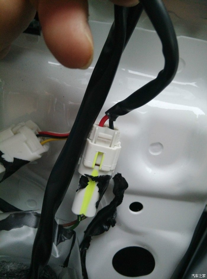 4 开始施工,我先拆左前门 ,门上有两个螺丝,先然后取下玻璃升降单元,拔线的时候轻一点,卡口是新的,比较难拔,所以先往里推,按住卡后晃动的就拔下来了,然后吧门从上往下掰开,全是扣子,我没有经验刚开始不敢掰,大家可以趁个劲放心掰,扣子坏了换了就好。