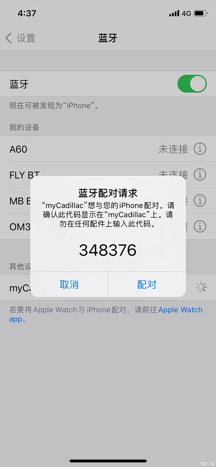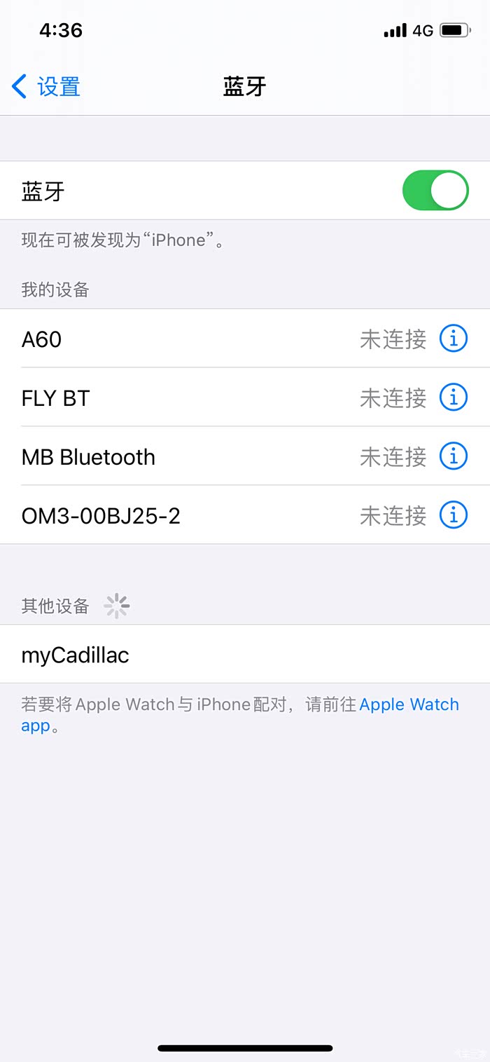 第三步:打开苹果手机》蓝牙找〉myCadillac点击
