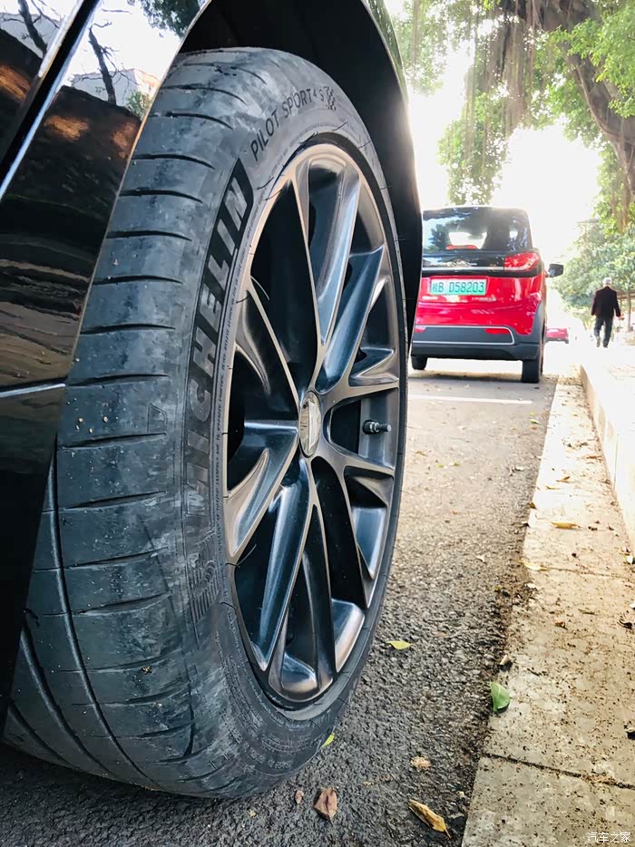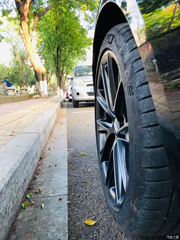 外观以及内饰也在上个贴说过,满满的线条感,加上溜背的造型带有一种圆润,熏黑的尾灯+前车辨识度较高的led大灯,趴的底盘配备大脚米其林轮胎。