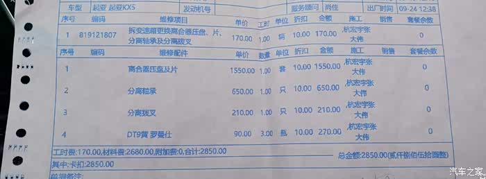 果断找了常用的修理店拖了回去。离合器总成拆下来时,我看了,离合片断了,分离轴承烧焦,拨叉退火。忘了拍照片了。