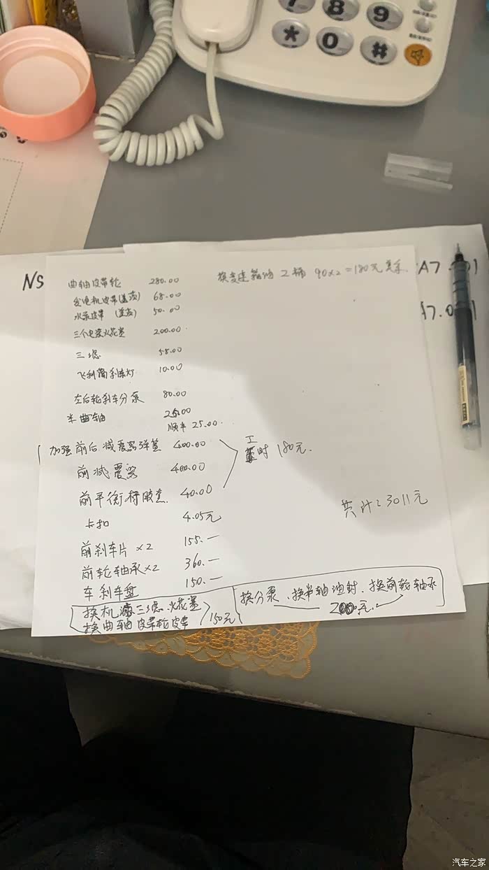 换刹车分泵、换半轴油封、换前轮轴承工时: 200.00