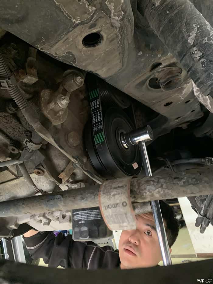 换上全新的曲轴皮带轮和两条皮带,换上全新的半轴油封,顺便换上全新的变速箱油。