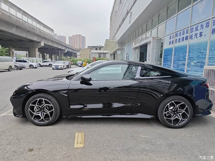 这辆车的最棒视角有三,一是正前方,因为车比较款,姿态比较低,跑车特性拉满。二是侧前方,就是第一张图,两门特性展示出来,配合大轮毂,帅气。三就是侧后方了,尾部肌肉感设计十足,力量感扑面而来。