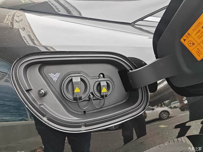 右后方集成了快充和慢充在一起,并且有加盖额外保护,还不错。