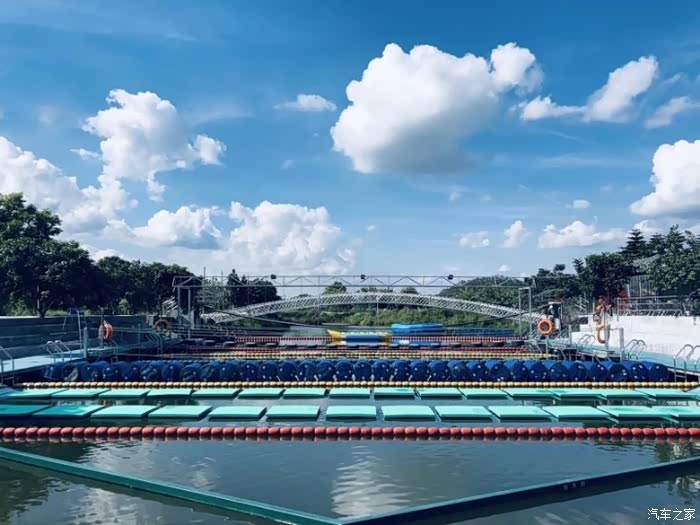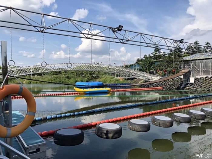 水上游戏场地下午4点才开放,一直到晚上十点。成人30元,1.2m以下小孩半价。我们是团队预订,所以可以提前进入。里面的泳池规模比较小,但是有四五个。最吸引的应该是水上活动这个区域了。