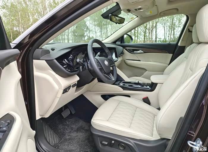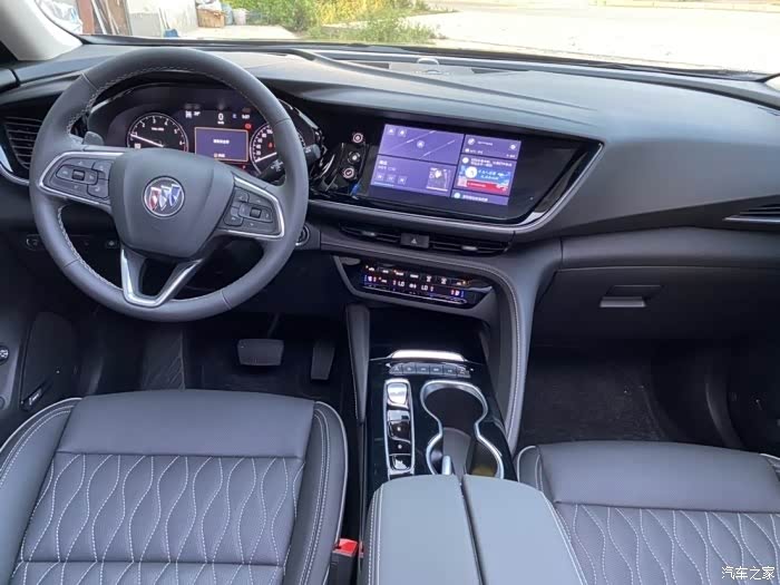 首先不得不说的就是就是这台车的两个前排座椅,采取人体工程学的设计,让座椅的贴合度以及包裹度都提升到了一个全新的高度,你坐上去就可以感受到前所未有的舒适,而且最友好的地方是前排的座椅通风采取的是吸风式的设计,是靠吸力带走你身上的热量,因为本人腰之前受过伤,一般车辆吹风式通风坐得时间长了,腰基本就直不起来了,吸风的我可以坐一整天主驾驶位采取的还是别克传统的环抱式座舱,中控屏幕和按键都是向主驾位进行倾斜,让驾驶员不费力的就能读取到中控屏幕的数据以及非常方便的操作按键。然后座椅用的是白色真皮的菱形打孔座椅,显得非常雍容华贵,就是不耐脏,小孩乱摸几下就黑了,但好在是非常方便搭理,擦一下就能光洁如新。