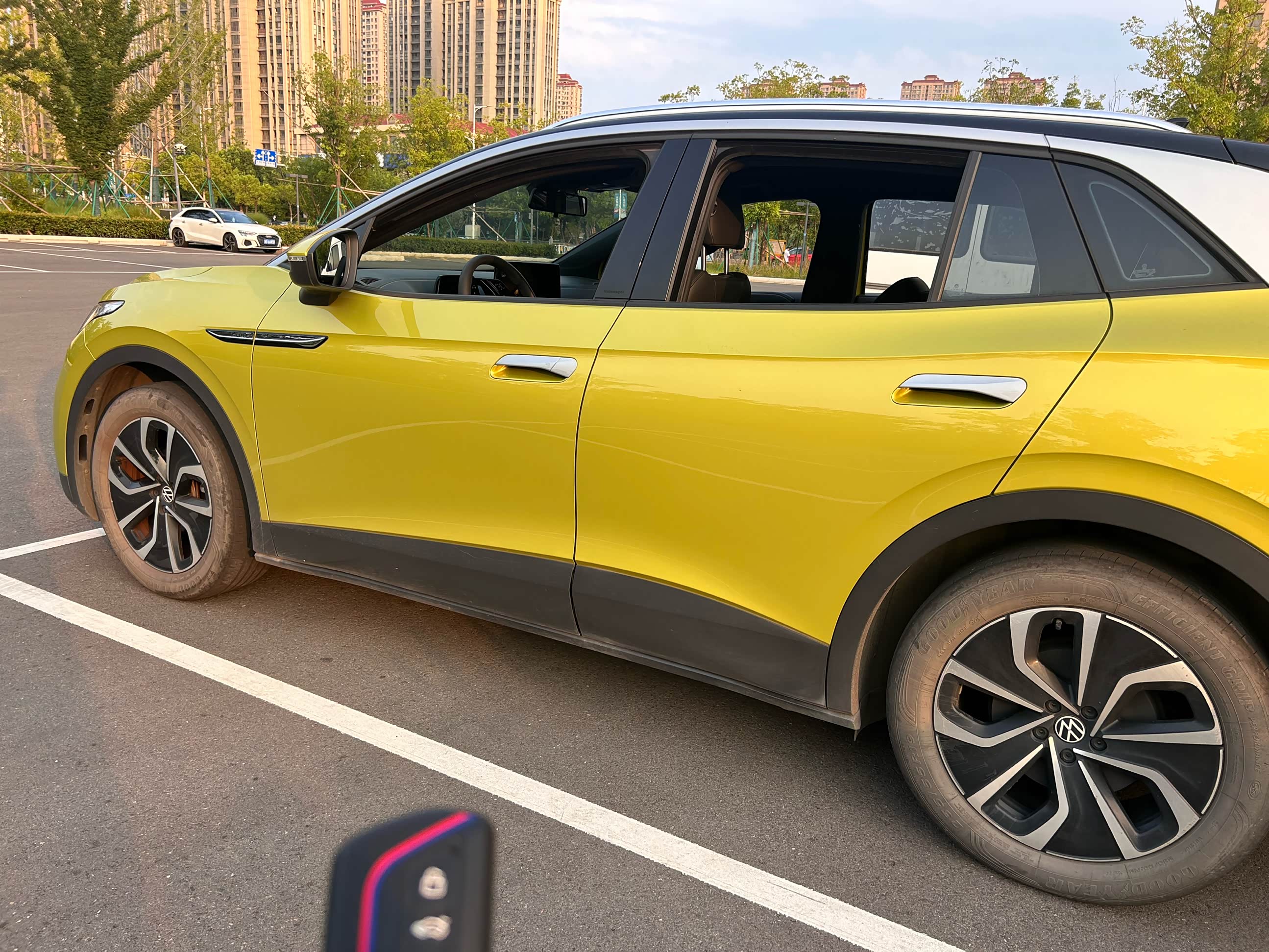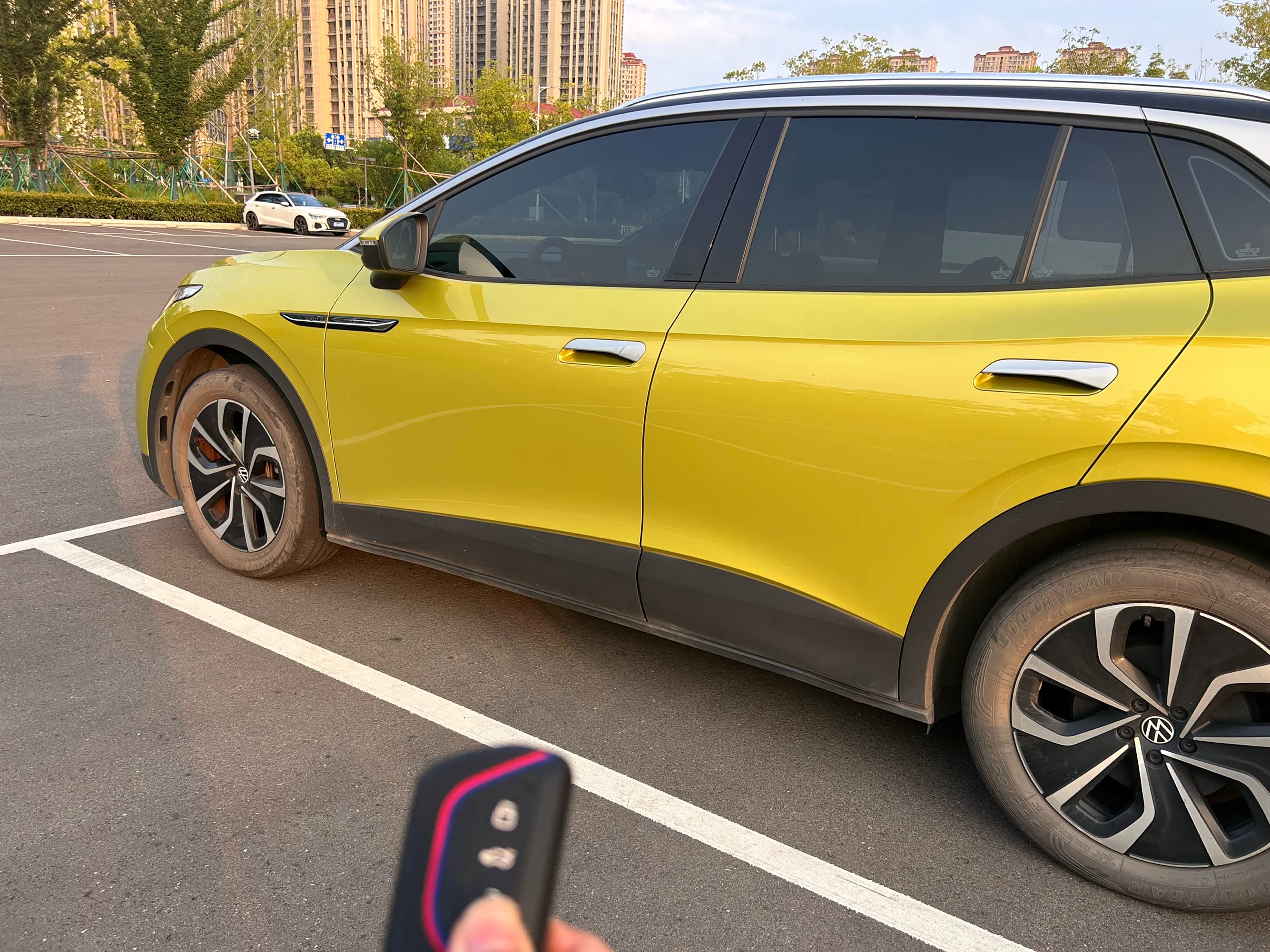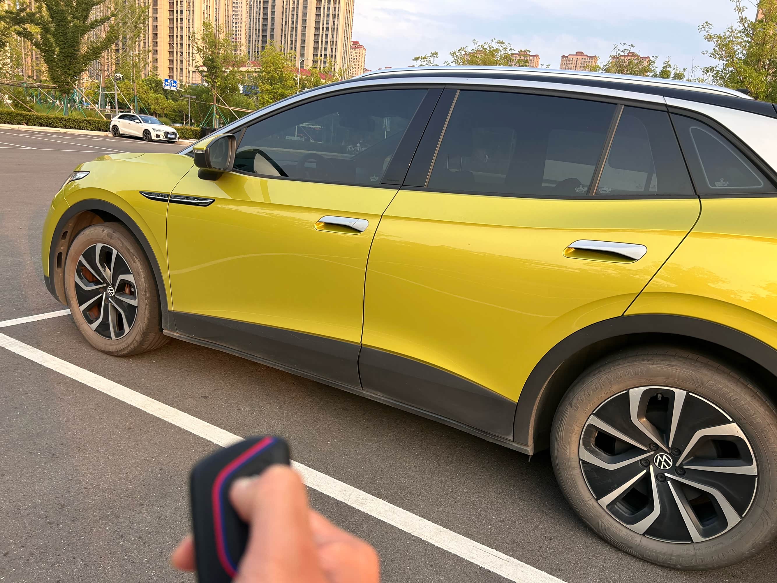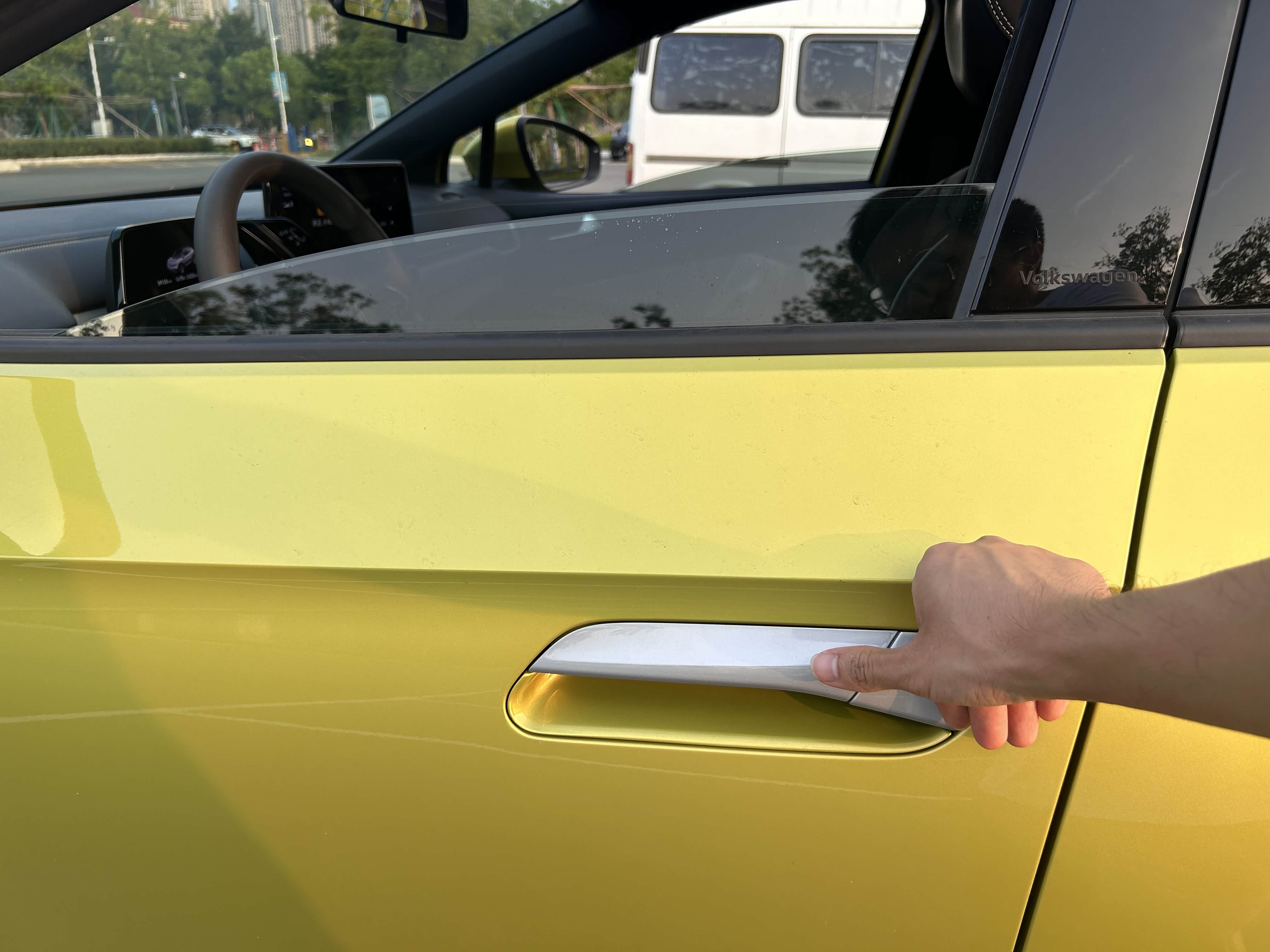 第二种车外开启的方式,适用于暴晒了一天车,远程开启空调后,可以给车内换换新鲜空气。