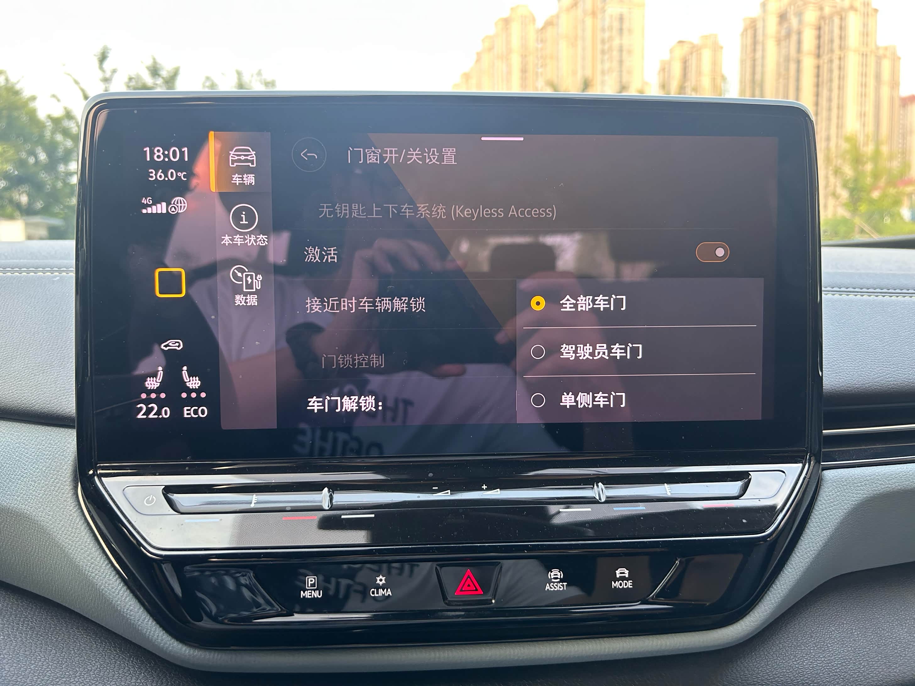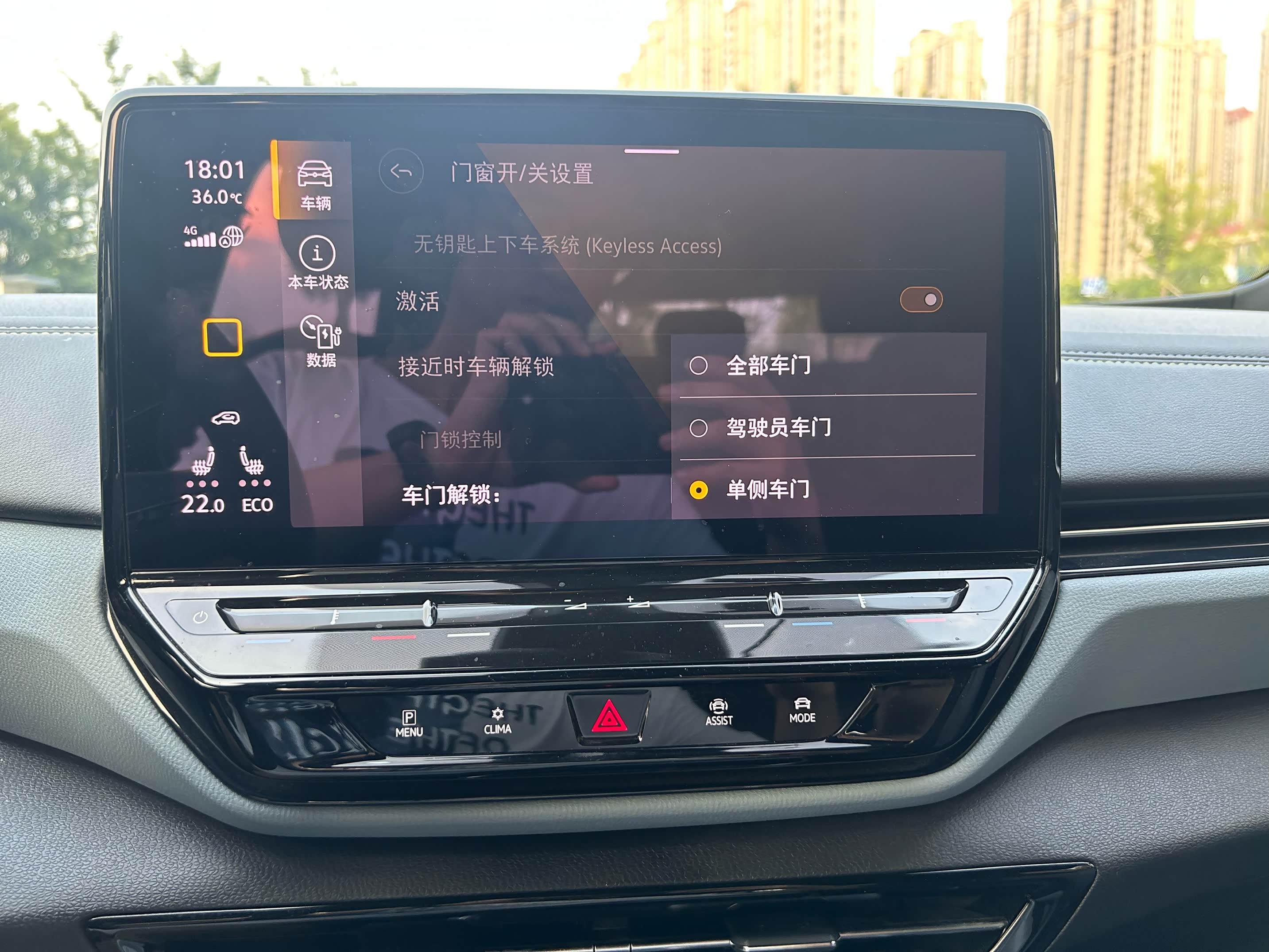 第一种车内开启的方式,适用于我们刚刚上车,想给我们的车辆通风透气,毕竟在车库里闷了一个晚上了。