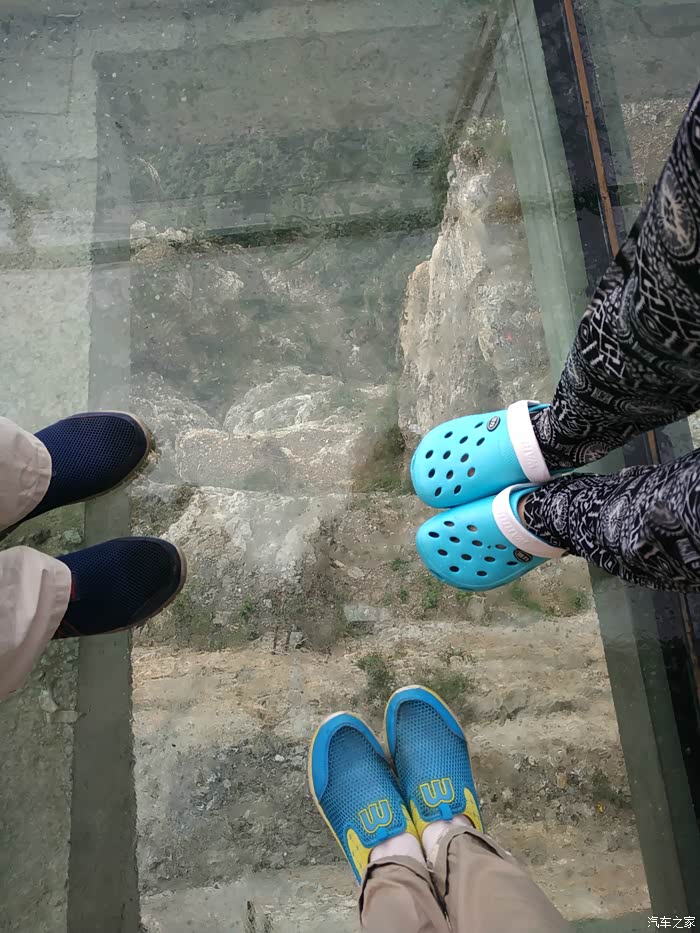鼓起勇气拍了一张鞋子的“全家福”,哈哈,孩子对玻璃栈道有免疫力,一点没害怕。