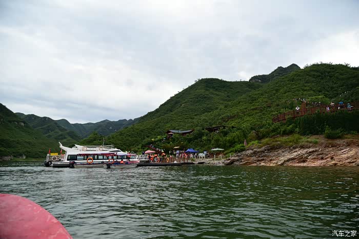 易水湖的景区在湖对岸,要乘快艇过去,刚才还下雨的天气逐渐放晴,好兆头。