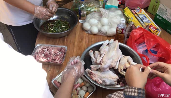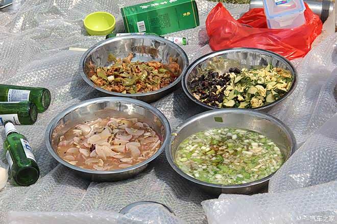 12时,炒鸡、木耳炒鸡蛋、羊肉汤、黄瓜炒鸡蛋等美味共同端上10多个“餐桌”,白酒、啤酒、饮料,让男女老少开怀畅饮,尽享8小时工作以外的乐趣。
