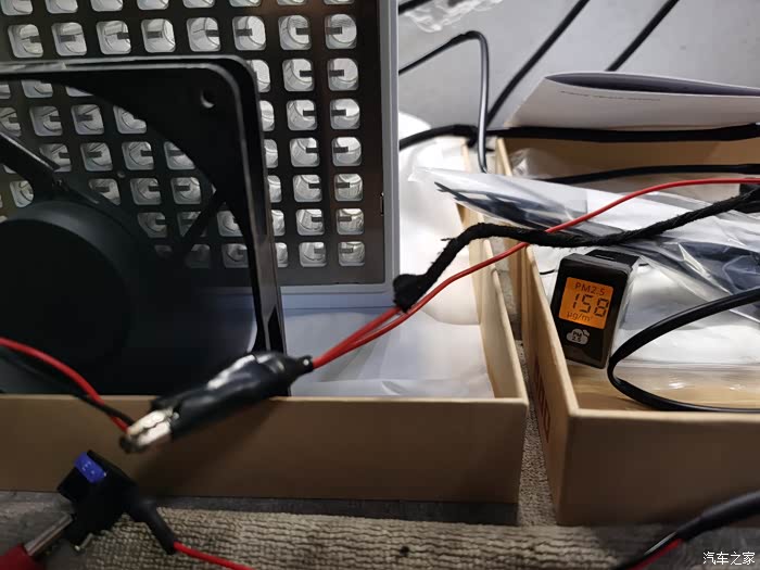 这是pm2.5显示器,为了这个需要拉比较长的线路到驾驶位保险丝盒位置附近。