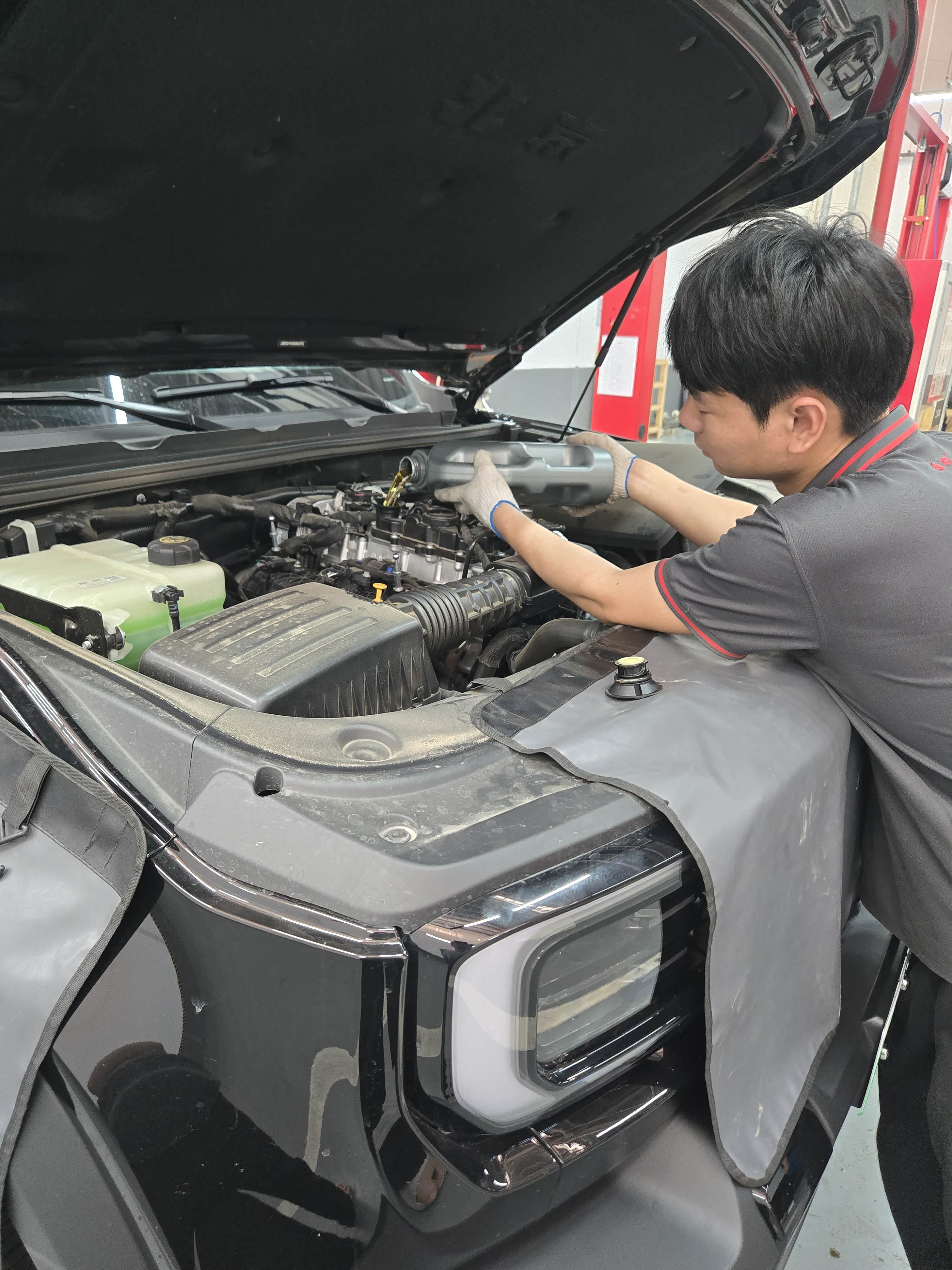 维修师傅们手法利落专业,一看就是经验老道。专属顾问小哥主动来到车间边,结合眼前的操作实时讲解,以及日常充电的注意事项,解答了我许多的疑虑。由于是第一次用车提了很多问题,无论是师傅还是顾问,都很耐心专业。而且作为越野新手小白,顾问给我推荐了许多改装方案,避免改装路上被坑,真的得给郑州御赞点个赞。
