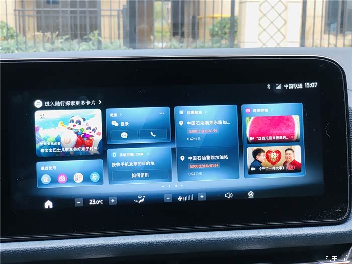 这是除主界面外,另一个卡片式的界面,这里可以自定义设置一些常用的,包括加油站、车载微信等等,都可以设置。