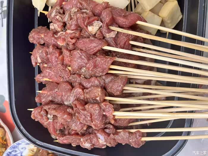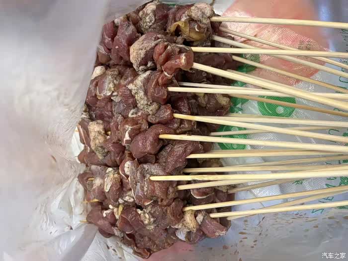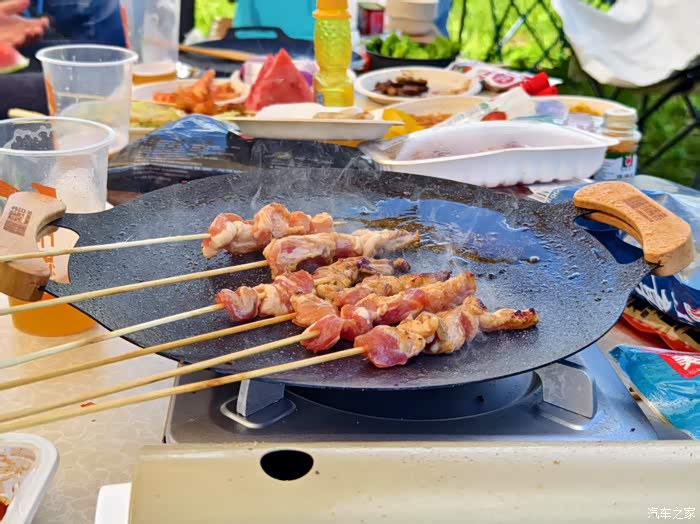 4、吃吃喝喝的食材:提前在家串好了肉串,还有一些菜品、水果、饮料、啤酒、纯净水。用了35升的车载冰箱,把食材统统冷冻冷藏起来,不然天气太热很容易变质。