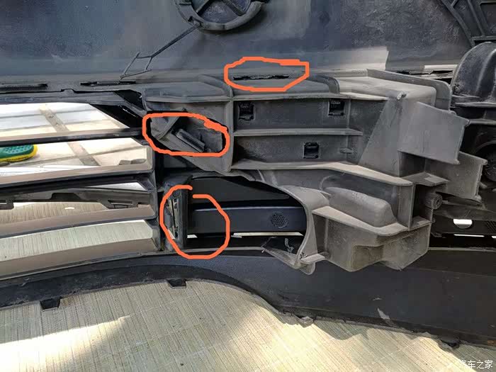 新的基本装好,我是从左边开始往右装的,最好按进去右边的卡扣,按的时候一定小心,别把雾灯按移位了,雾灯两段的,容易移位。