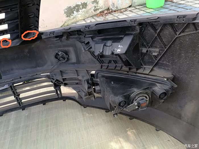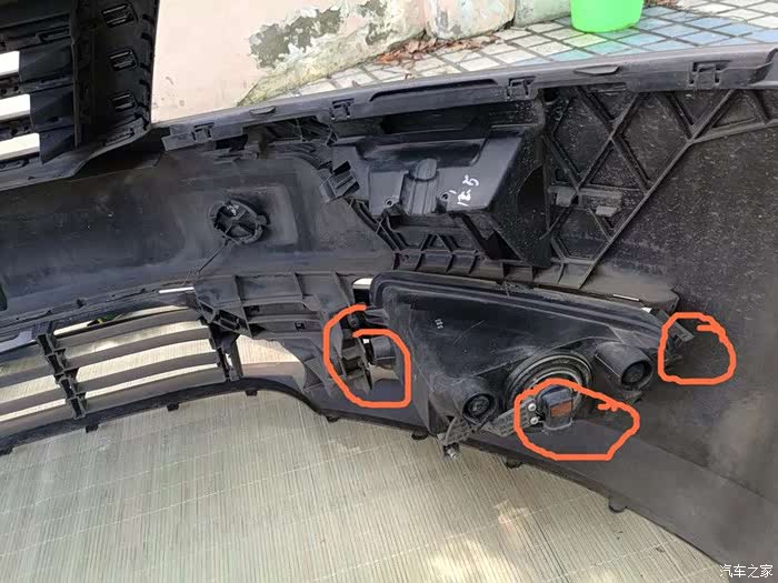 拆下来坏的雾灯框和新的雾灯框,新的某宝买的,便宜很,质量一样,如果单独拆雾灯框是不需要拆保险杠的,只有拆雾灯才需要拆保险杠,如下图