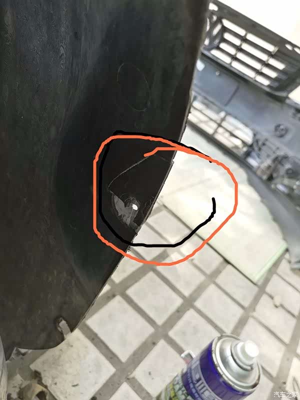 这块轮拱也是冬天碰地桩时候被拉坏的,还好保险杠没有事,底部有点变形,我用开水烫然后拉回原位,现在给它补一下