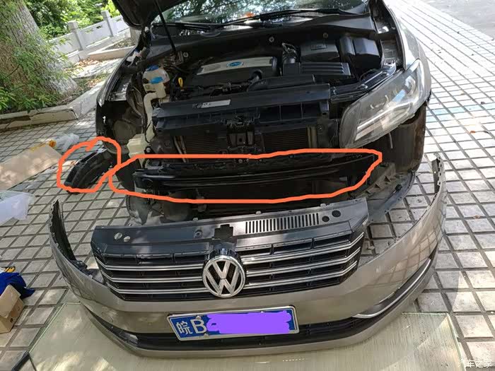 2015款帕萨特拆保险杠修理大灯和更换雾灯框精